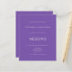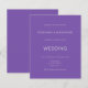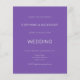 Convite para casamento roxo moderno e simples. A cor e o tipo da fonte podem ser alterados através do menu de edição. Você também pode alterar as cores do texto e do plano de fundo em ambos os lados, se desejar. Um valor para o alternativo menor de 4,5 x 5,6 polegadas é usado como padrão para a opção de semigloscópio, que é recomendada para convites e é de espessura semelhante a um cartão postal. A opção satin é muito mais fina.