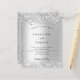 Um fundo metálico falso prateado. Decorado com brilho falso, brilhos. Personalize e adicione seus nomes e detalhes da festa. Voltar: adicione o URL do seu site de casamento ao código QR para obter mais informações e registro RSVP. Este convite também está disponível em nossa loja sem o código QR no verso