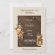 Ponha o tom para o seu dia especial com este belo convite para casamento. Projetado em tons castanhos quentes e úmidos, este convite apresenta uma estética natural e inspirada na safra perfeita para casamentos de campo, celeiro, floresta ou boho. Acentuado com delicados elementos florais, ele captura o encanto do romance do eterno. Este convite é perfeitamente personalizável com os detalhes do seu casamento. Ideal para casais que adoram elegância orgânica, de baixo para terra, esta design combina calor e sofisticação para uma primeira impressão verdadeiramente memorável. Disponível como um download digital ou opção impressa.