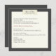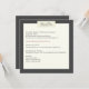 Aumente sua suíte de casamento com nosso encantador convite para casamento. Este cartão quadrado apresenta um design coeso que complementa o resto do nosso Concurso Russo Elegante. A frente da placa apresenta um fundo escuro com um retângulo branco amarelo que cria uma aparência branca envelhecida. Todos os detalhes essenciais do casamento são escritos elegantemente em uma fonte de tipo máquina de escrever antiga. Um retângulo em forma de fita de mascaramento na parte superior do retângulo branco contém os nomes do casal em uma fonte na moda e sua data de casamento na fonte da máquina de escrever criando um encantador olhar rústico. O verso do cartão continua o tema rústico com fundo escuro e a fita centrada no design, mostrando os nomes do casal e a data do casamento.