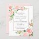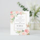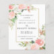 As rosas cor-de-rosa e as flores brancas brilhantes da hydrangea são aninhadas em folhas verdes macios para criar arranjos florais elegantes que decoram uma espumante estrutura de ouro que envolve seus detalhes de casamento. O dorso é cor-de-rosa pincelado com um simples buquê floral de coordenação. Este item é parte da Coleção de Casamentos Florais Blush Pink e White.