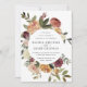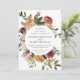 Os convites para casamentos florais elegantes ou quedas ou casamentos no inverno apresentam os seus detalhes rodeados por rosas de aquarelas, mães e verde em cores rústicas do outono, incluindo pêssego, marfim, blush, burgundy e verde. Um design moderno e elegante para casamentos quentes rústicos nos meses de outono ou inverno.