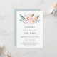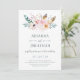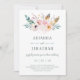 Este convite de casamento rústico e de moda apresenta um buquê cheio de flores e penas de aquarela.
