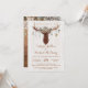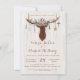 Anúncio de casamento russo com samambaias, galhos, flores, elementos florestais e veados sobre fundo de madeira. Excelente para um casamento inspirado em boho, ao ar livre, rústico, celeiro ou floresta! Todos os textos podem ser alterados