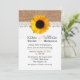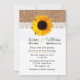 convite de casamento na moda rustico feito em branco, com gráficos de uma burlap, lace e saguão e um girassol bonito, no meio. Personalize o texto preto para o seu casamento. Os produtos correspondentes estão disponíveis.