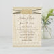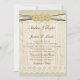 Belo e elegante convite para casamento russo apresenta madeira de celeiro leve com flores de rendas e burlap. Perfeito para um casamento no campo