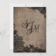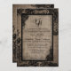 Lace preto gótico sobre o fundo da sobreposição rústica com grunge com o cartão de convite de casamento gótico monograma.