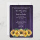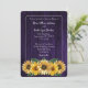 Convide convidados para o seu próximo casamento com um convite para casamento de girassol roxo russo. Design de convite apresenta um fundo de madeira rústico com um buquê elegante de girassóis. Personalize com os nomes do noivo e da noiva junto com a data do casamento e a localização. Material adicional disponível com esta design também.