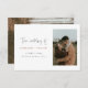 Convite Simples E Elegante De Casamento De Fotos. Este design refinado apresenta uma foto de solteiro à esquerda, belamente balanceada com a tipografia moderna e mínima à direita. O layout limpo inclui espaço para uma mensagem pessoal, sua data de casamento e local, enquanto os nomes do casal são assinados elegantemente em um estilo manuscrito, adicionando um toque pessoal e romântico. A parte traseira tem espaço para outra foto de cobrir de cheio.
