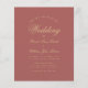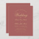 Um simples convite para casamento de orçamento minimalista. Ele tem apenas um ouro de texto amarelo sobre fundo rosa de canela. A palavra Casamento e os nomes são escritos em um roteiro caligráfico elegante.