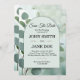 Este convite minimalista apresenta um esquema de cor verde macia e um simples design de arco, acentuado com delicadas folhas de eucalipto. Perfeito para um casamento moderno ou rústico."