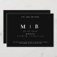 Preto Simples e Sonolento com Convite para Casamento Monograma Branco. Contemporâneo. Site.