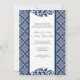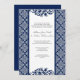 Este convite de casamento clássico e elegante é criado num marinho de damask azul. Este convite de casamento é perfeito para um casamento formal. cartões salve a data correspondentes, resposta, recepção, direção e cartões de agradecimento também estão disponíveis. Design de Mujka