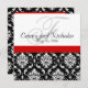 Casamento tema damasco Vermelho Negro Branco Convite com um monograma inicial, nomes de noiva e noiva e data de casamento.Design do Convite de Casamento por Elke Clarke ©2010. Gráficos licenciados. Personalize com suas informações e cores de casamento.
