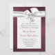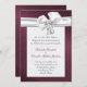 Um convite de casamento elegante feito em um rico Máron Damask, com uma adorável área de texto em estilo de damasco branco. Gráficos de uma placa branca como um arco com uma joia de tom prateado decoram o topo do convite. O texto de roteiro em cinzas escuras e burgundy é totalmente personalizável para atender às suas necessidades.