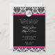 A Elegance encontra o charme do eterno com este convite para casamentos tema damasco preto, branco e rosa. Adorado com cores damasco intrincadas, este belo convite define a palco para uma sofisticada e clássica celebração de casamento. Os detalhes delicados e luxuosos se sentem evocando uma sensação de romance e refinamento, capturando a essência do seu dia especial. Sinta-se à vontade para entrar em contato comigo através do recurso de mensagem se precisar de assistência com este design ou se quiser adicionar outra personalização. Ou contacte-me por correio eletrônico em zazzlestores@yahoo.com.
