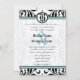 Azul-Renascença medieval Aqua Preto e Branco Padrão Floral Casamento tema damasco Convite
