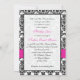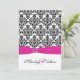 Este convite para casamentos tema damasco preto e branco tem uma fita rosa-quente IMPRESSA com um broche de joias de diamante IMPRESSO. O texto e o papel são todos personalizáveis. Se você precisar de outros itens correspondentes, envie um email para niteowlstudio@gmail.com. Os itens correspondentes existentes são mostrados abaixo.
