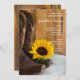 Celebre seu amor com o encanto rústico do Convite para Casamento de Girassol no País. Perfeito para um casamento informal, mas elegante, ao estilo da fazenda, este encantador convite combina um toque de talento ocidental com romance eterno. Apresentando um arranjo aconchegante de botas de cowboy de couro marrom, uma flor de girassol amarelo brilhante e um pano de fundo de madeira marrom rústico em um design de cetim branco macio, este convite define o tom perfeito para um casamento de festas ou fazenda inspirada em festas. Personalize-o com seus detalhes de casamento, incluindo nomes, data, hora e local, para criar uma manutenção verdadeiramente pessoal. Quer você seja uma noiva de vaqueira ou um noivo de vaqueiro, este convite é uma combinação perfeita para sua história de amor e núpcias casuais do campo. Ele está disponível como um convite impresso para envio tradicional ou como download digital para um compartilhamento online conveniente. De uma encantadora cerimônia de celeiro a uma acolhedora fazenda, este convite temático ocidental é uma maneira maravilhosa de convidar amigos e familiares para se juntarem à sua comemoração alegre.