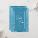 As folhas tropicais criam um apelo moderno e cativante para estes convites para o casamento. Apresenta tons de cores reais. Utilização para complementar temas de casamento tropicais e eventos especiais utilizando o azul lacrimogênio como cor focal. A frente do cartão exibe os nomes dos casais junto com a data da cerimônia de casamento. Detalhes do seu evento especial estão no verso. Use a modelo para personalizar.