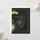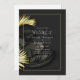 Convite de casamento tropical com aspectos de preto e ouro.
