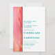 Aqui está um elegante, porém moderno convite formal para o casamento, com um pouco de diversão e entusiasmo neste maravilhoso espectro de cores do vermelho indiano, viva magenta, melão, ouro e verde verídico. Na frente está uma trabalho de arte de tinta embebida em álcool, que faz fronteira com o texto do convite, com uma banda de contraste de verde. Este rosa moderno é do espectro da viva magenta. Esta bela trabalho de arte foi criada pela artista internacional Pauline Benjes usando tinta alcoólica em ótimas matizes de verão. Para complementar o trabalho de arte único e excitante, a frente tem um layout de texto simples, mas elegante, usando fontes serif e san serif. O código hexadecimal de cor deste rosa é #FE6774 e o verde é #159F9D. Veja nossa coleção para mais cores desta paleta. Convocação para Casamento Verde Cor-de-Rosa Moderno.