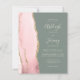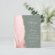 A borda esquerda deste elegante convite de casamento moderno apresenta uma cor-de-água rosa pincelada com borda falsa de ouro. O texto personalizável combina letra pálida, letra copperplate e itálico em um fundo verde de sábio profundo. O verso apresenta um design dourado e uma pincelada correspondente.