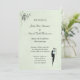 Fundo verde de menta macio com aspecto sutil de aquarela. Apresenta uma ilustração de uma noiva e noiva e uma borda decorativa de canto. Esta design de casamento vem com muitos produtos de papel para se adequar a todas as suas necessidades.
