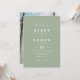 Simples Convite para Casamento Verde de Folha com Foto. Este design moderno de convite de casamento é minimalista e elegante com um texto ousado destacando os nomes dos casais. Mostrada na nova Paleta de Cores de Casamento. Também apresenta uma fotografia personalizada no verso. A coleção de casamento Bold Names tem certeza de que o seu casamento é memorável e bonito! Para ver mais, procure as coleções de casamento de 2022 da Chic Paperie para ver todas as tendências de designs e cores de casamento para este ano.