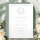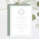 Apresente o seu casamento com sofisticação e estilo através do nosso Convite Formal de Casamento Verde. Este convite apresenta uma crista de monograma eterno com as iniciais do casal rodeadas por sotaques florais elegantes. Feito em verde-sereno, esse design moderno, porém clássico, incorpora tipografia refinada, criando um convite facilmente personalizado para sua celebração formal. Estou feliz em ajudar com as personalizações que você precisar.