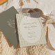 Adicione um toque de charme e elegância moderna ao seu grande dia com este Convite de Casamento Verde da Greve Impressionante. Apresentando listras lúdicas e desenhadas à mão em matizes verdes e suaves e associadas à tipografia do eterno, esta design combina capricho e sofisticação sem esforço. Perfeito para um casamento de jardim, cerimônia de primavera, ou celebração minimalista, este convite dá o tom para um evento alegre, mas refinado. Totalmente personalizável, você pode personalizar facilmente o texto, a fonte e o layout para corresponder à sua visão de casamento. Impresso em papel de alta qualidade com várias opções de acabamento e tamanho, este convite é ideal para casais que procuram algo novo, moderno e único. Faça sua primeira impressão inesquecível com este charmoso convite à stripe.