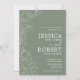Convite de casamento botânico moderno em verde-oliva e branco. Simple boho design apresenta destaque floral desenhado à mão, fonte do script de tipografia e monograma no verso do cartão. Impressos convites Zazzle ou modelo de impressão digital instantânea para download.