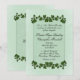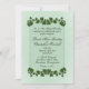 Um adorável convite verde de menta com bordas de folhas verdes. Coloque os primeiros nomes do casal de um lado com todas as informações do casamento e saudação da mãe e do pai da noiva. Por favor, verifique triplicamente todo o seu texto.
