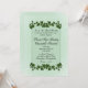 Um adorável convite verde de menta com bordas de folhas verdes. Coloque os primeiros nomes do casal de um lado com todas as informações do casamento e saudação da mãe e do pai da noiva. Por favor, verifique triplicamente todo o seu texto.