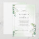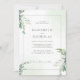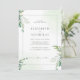 Um convite de casamento elegante e minimalista, que inclui um verde-aquarela, folhas de eucalipto macios e delicados sotaques botânicos em tons verdes seniores. Perfeito para casamentos de jardim, cerimônias ao ar livre e celebrações inspiradas na natureza. A disposição limpa e moderna, aliada a elementos naturais, cria um aspecto eterno e sofisticado.