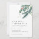 Este é um convite de casamento verde de inverno com uma bela aquarela cada galho verde e uma fonte moderna.
