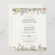 Este convite de casamento rústico mostra bordas de água de cima e de baixo de verde delicado. Personalize-o com os nomes da noiva e do noivo em uma fonte de cinza de carvão vegetal antiga em um fundo branco. Adicione o casal inicial no verso, rodeado por uma pequena faixa de aquarela correspondente.