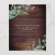 Convites russos para celebração de casamento impressos em papel leve, ideais para orçamentos conservadores e entrega de mão aos hóspedes. Lindo país, madeira escura com aquarela eucalipto e verde com sotaque dourado e tipografia elegante. Todo o texto é editável para mudar o texto para o ajustado das suas necessidades. Entre em contato com o designer por meio do Zazzle Chat ou makeitaboutyoustore@gmail.com se você quiser que este design seja modificado, em outro produto ou em itens de coordenação.