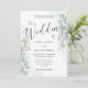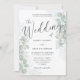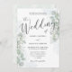 Convite de casamento russo do Eucalyptus. Apresentando folhagem delicada em verde-sábio e azul poeirento sobre fundo branco, todo design original pintado em aquarela. Preencha com tipografia de estilo escrita à mão e edite texto fácil.