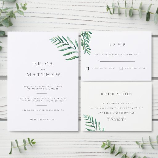Um simples convite verde, perfeito para casais querendo um tema de casamento clássico e subestimado. A design apresenta um simples arranjo verde de plantas e folhas verdes. A cor da fonte mostrada é a cinza escura. Estes, juntamente com o estilo da fonte, podem ser personalizados inteiramente de acordo com o seu gosto. Se precisar de outros itens correspondentes, ou se tiver perguntas, por favor, não hesite em contactar-nos.