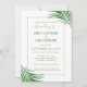 O nosso convite único para o casamento das folhas tropicais modernas apresenta uma fronteira geométrica dourada e dentro elegante de tipografia, um grupo exuberante de frondes de palmeiras verdes. É perfeito para um destino de praia ou casamento insular nos trópicos. Altere a cor, o posicionamento ou as fontes do texto, clicando em PERSONALIZAR MAIS. Os itens de coordenação estão disponíveis nas coleções de compro Destinos de Fita de Papel do Zazzle Designer.