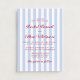 Este convite de casamento vermelho e azul é uma escolha ousada e na moda para casais que querem fazer uma declaração. Com um moderno design stripe com tipografia elegante, esse convite combina perfeitamente o encanto clássico com o talento contemporâneo. Uma bela maneira de convidar os entes queridos para a sua celebração especial.