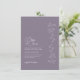 Este convite para o casamento da Vintage Violet apresenta uma arte de linhagem botânica emparelhada com uma letra de escrita romântica. A carta de convite se reverte para uma cor de sotaque violeta acinzentada que realce seu site de casamento RSVP de Código QR para os convidados verem informações sobre o dia do casamento. Um download digital também está disponível para comemorações sustentáveis. Veja esta coleção de folhagens botânicas visitando o compro Rita Rosa Zazzle em: https://www.zazzle.com/store/ritarose 🩷 As encomendas personalizadas são sempre bem-vindas, se você não vir o que está procurando, sinta-se à vontade para me contactar. 🤍 sempre me alegro em ajudar.