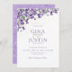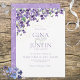 Violetas simples e bonitas trazem o topo deste convite. Com um pouco de efeito de brilho dourado, é clássico e elegante. O apoio é um olhar violeta macio marmoreado, com um toque de nadador. Bonita para um casamento de verão, ou qualquer casamento onde roxo é a cor principal.