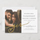 Este convite de casamento virtual destacado apresenta Sim em ouro e foto na frente do cartão com um padrão geométrico dourado no verso do cartão. Personalize facilmente sua foto pessoal e seus detalhes para torná-la sua. O anúncio perfeito do casamento online para notificar a família e os amigos da sua próxima cerimônia de casamento.