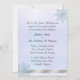 Um convite de Casamento no inverno maravilhoso feito em um fundo de prata de cristal, uma fita cintilante de tom prateado correndo pelo meio e um conjunto de três flocos de neve bonito, com aspecto brilhante, decorando a frente, do cartão. O verso do convite tem o mesmo fundo, com a fita cintilante de tom prateado, no fundo e decorado com um floco de neve, e um floco de neve decorando o canto superior direito. O texto preto está pronto para personalizar o evento de Casamento no inverno.