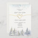 Convide seus entes queridos para uma celebração de inverno aconchegante com este elegante convite para casamento, com pinheiros pintados manualmente pintados a aquarela, pintados com neve e um delicado coração de corda de ouro. Colocado contra um fundo de marfim macio com sotaques azuis gelados, é perfeito para casamentos no inverno rústicos, cerimônias de chaleiras de montanha, ou núpcias de matas. Personalize com seus detalhes para um toque pessoal e encantador.