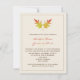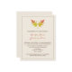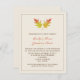Um convite de casamento outono com a imagem de duas folhas de carvalho vermelhas e amarelas cruzadas no topo. Pesronalize o texto com detalhes da sua ocasião. Fronteira castanha.
