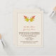 Um convite de casamento outono com a imagem de duas folhas de carvalho vermelhas e amarelas cruzadas no topo. Pesronalize o texto com detalhes da sua ocasião. Fronteira castanha.