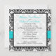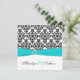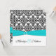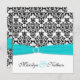 Este cartão RSVP preto e branco tem uma fita azul-aqua IMPRESSA e broche de joia de diamante IMPRESSO que seria perfeito para um casamento de aqua e temas negros. Se você redimensionar o convite, ou se você alterar as fontes, ou o tamanho da fonte, parte do design e/ou texto poderá ser cortada. Tudo será impressão como você vê no seu monitor. Não verei o seu convite, e Zazzle NÃO corrigirá nada (erros de digitação, mal-alinhamento, etc.). O texto e o papel são todos personalizáveis. Se precisar de ajuda para este convite, envie-me um e-mail ANTES de fazer seu pedido. Se você precisar de outros itens correspondentes, envie um e-mail para niteowlstudio@gmail.com.